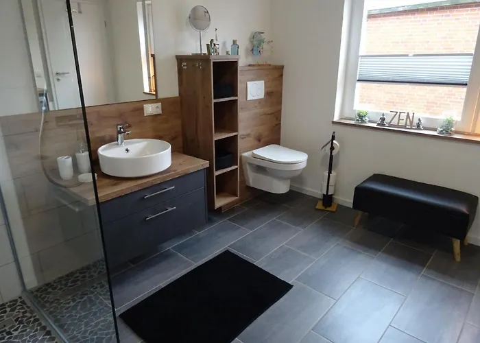Vanuit de kamers kunt u genieten van het uitzicht op de binnenplaatszichten. Gasten van 1-slaapkamer "Bi Oddi" - Moderne Fewo Mit Terrasse Und Garten kunnen van 1 badkamer gebruik maken. Bovendien zijn er ook een haardroger en handdoeken.